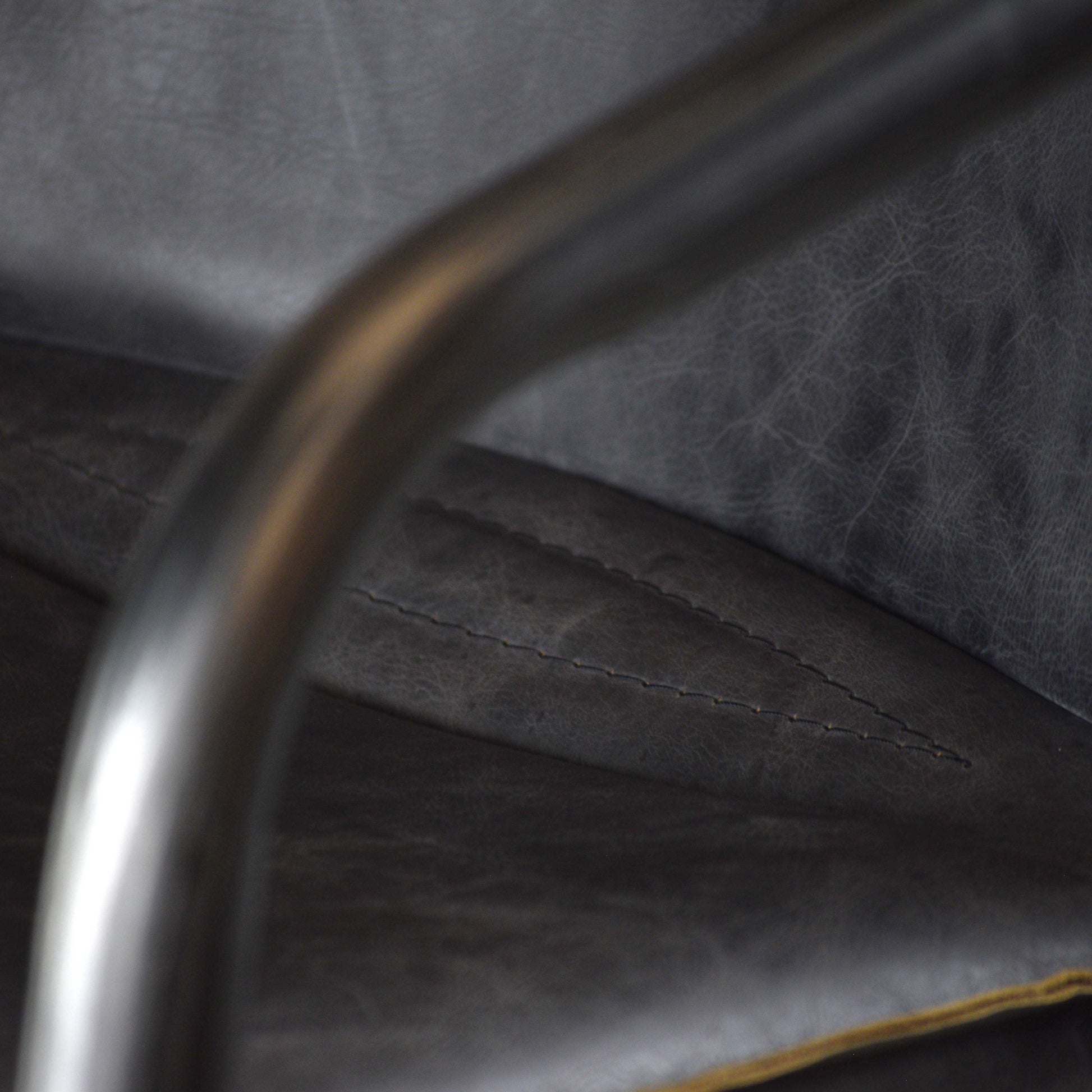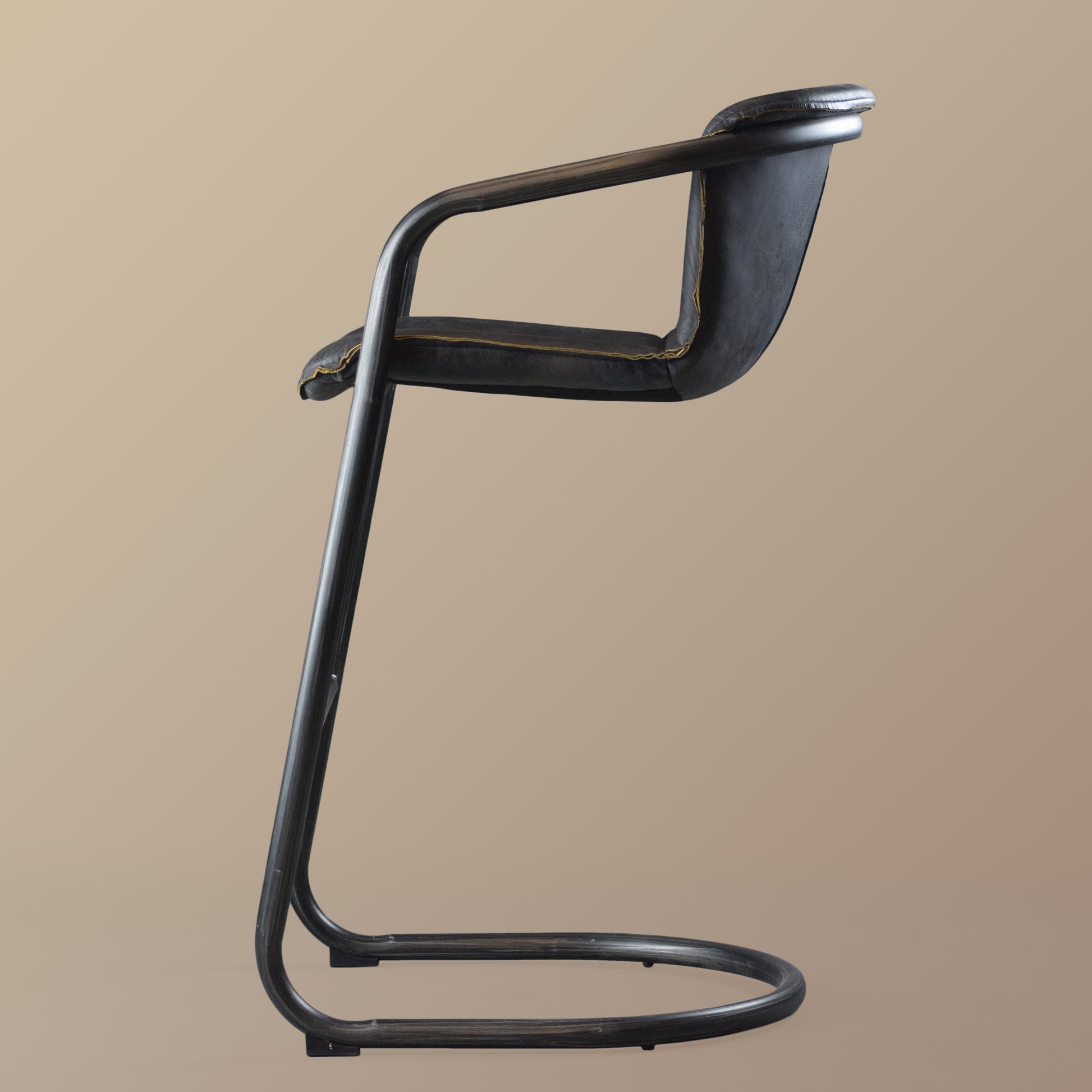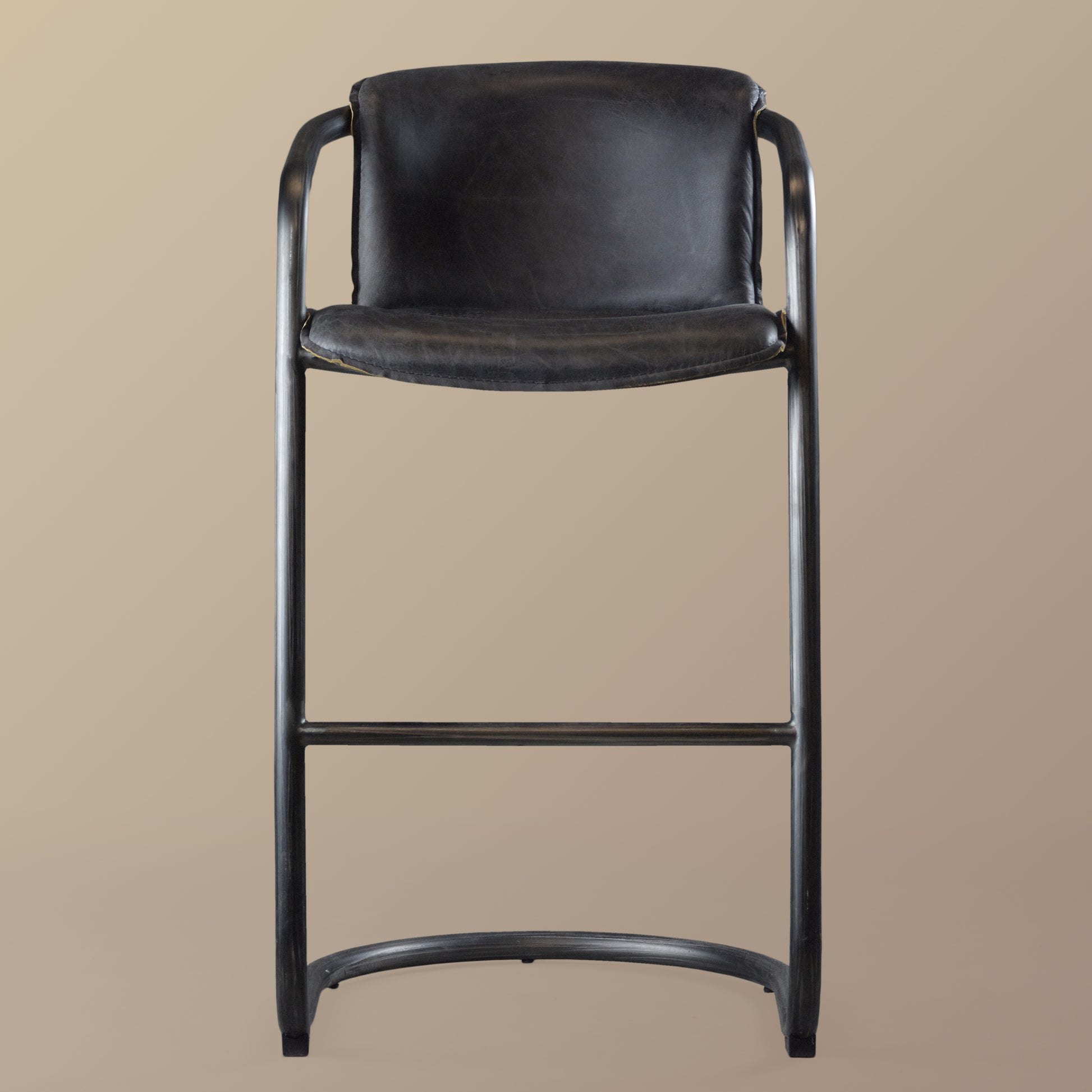 The Ponderay barstool has a versatile design that complements any space. Top grain leather with exposed raw edges make up the seat while a vintage iron C-shaped frame creates maximum comfort and unparalleled style.