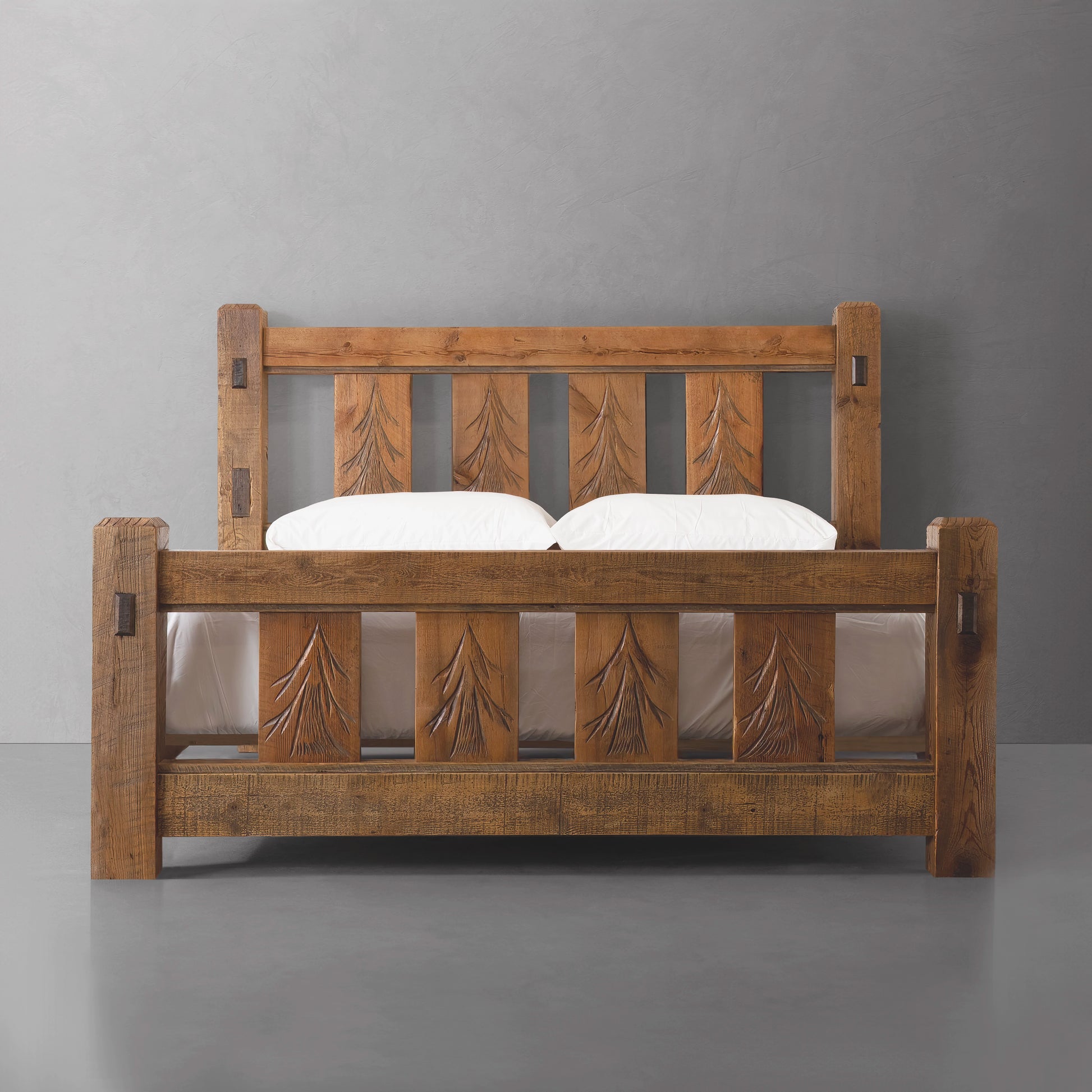 Each piece in our Sequoia collection is made from reclaimed American barn wood that has been repurposed. The wood used in this collection is more than a century old, giving the material a natural patina and lasting durability that can't be achieved with shortcuts. Every piece features unique hand-carved trees.